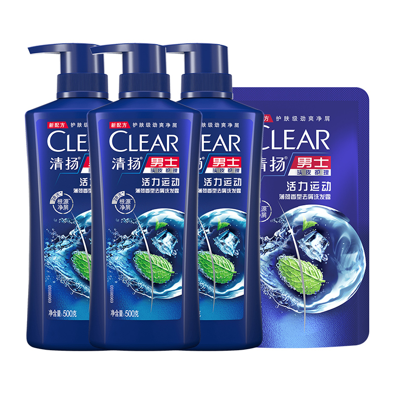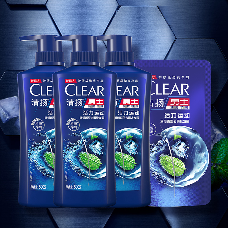 Qingyan men's dandruff dynamic movement to immediately stop itching ice sensation Shuang mint shampoo 500g * 3 200g-Taobao