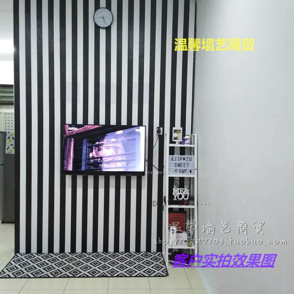 Black white horizontal vertical striped wallpaper Self-adhesive modern minimalist living-room Coffee Dining Room Clothing Shop Wallpaper