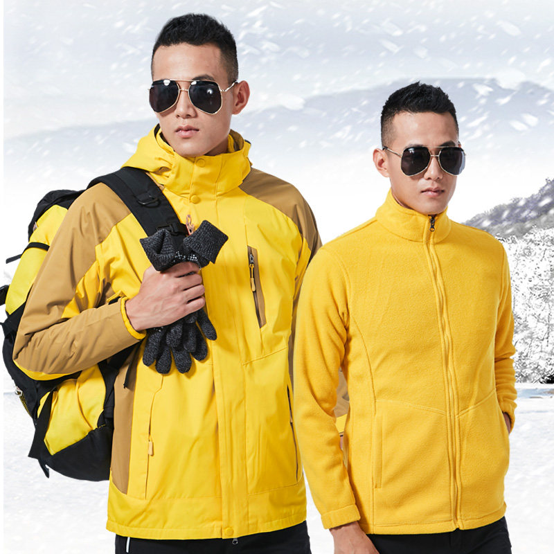 Men 3 in 1 or 2 pieces of female waterproof thickness and winter outdoor cold wear Tibet plus velvet climbing suit