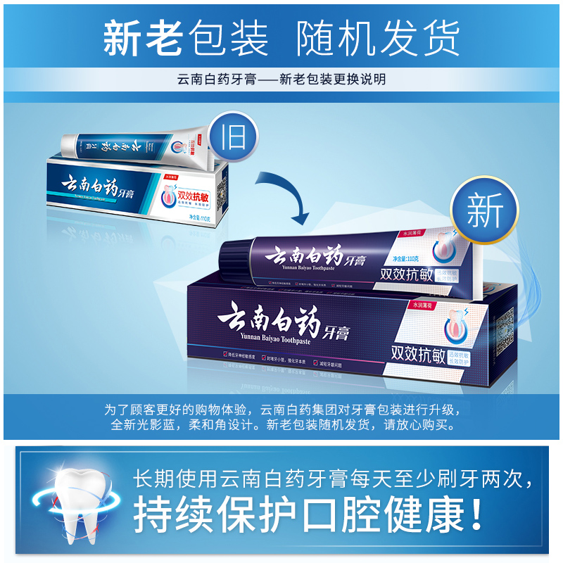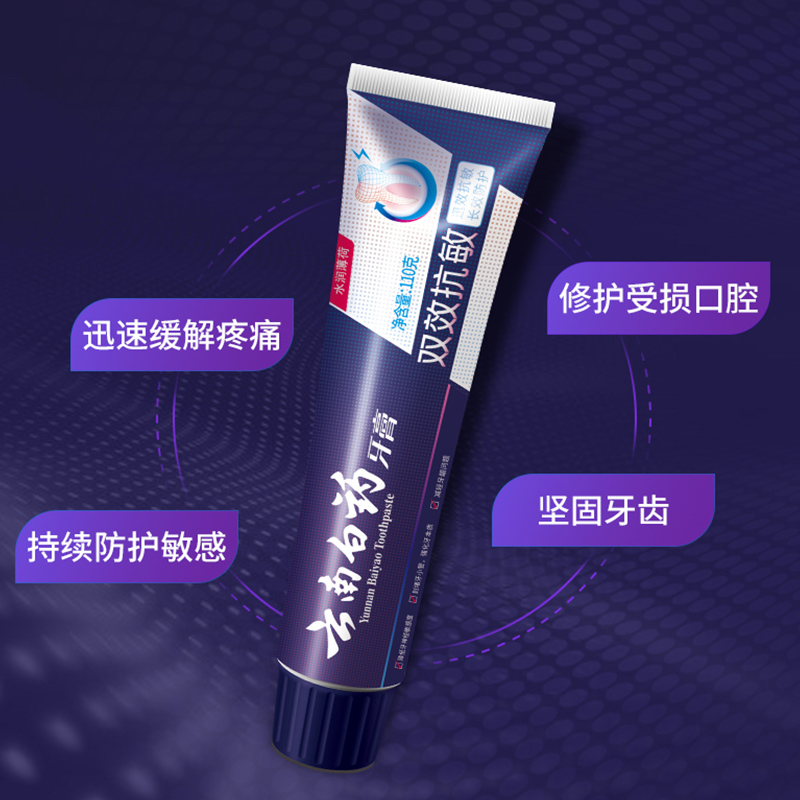 Yunnan Baiyao Toothpaste Double-effect anti-sensitive gingival protection Remove yellow smoke stains Gingival protection periodontal fresh breath Adult