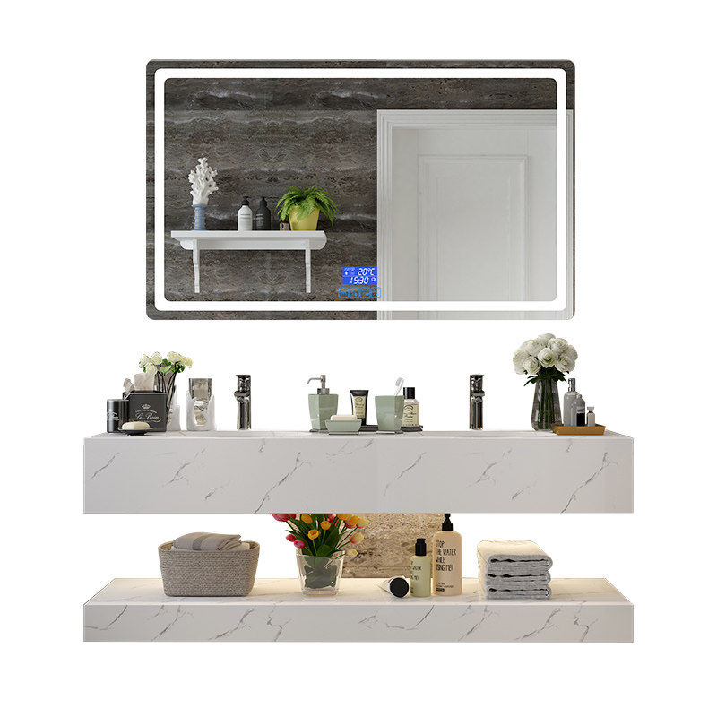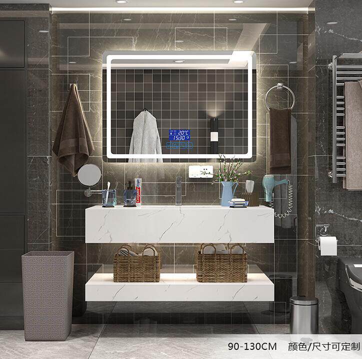 Nordic bathroom cabinet combination simple modern marble wash face and hand wash double-slot washbasin powder room anti-fog mirror washstand