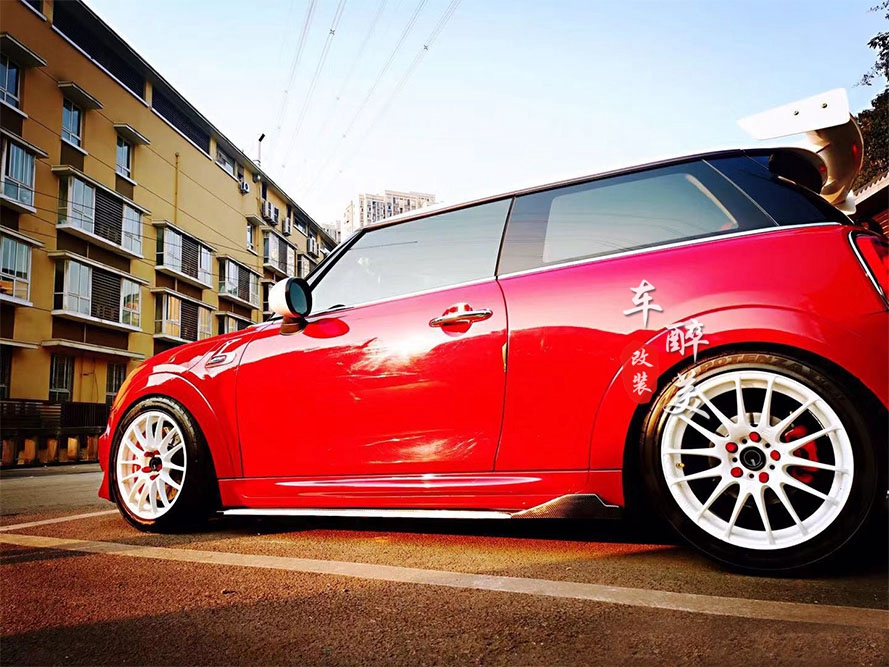 BMW Mini F56 retrofitted with MINI tail F55 retrofit small surround BMWF56 Carbon slim side Spade Side Skirt