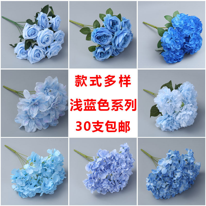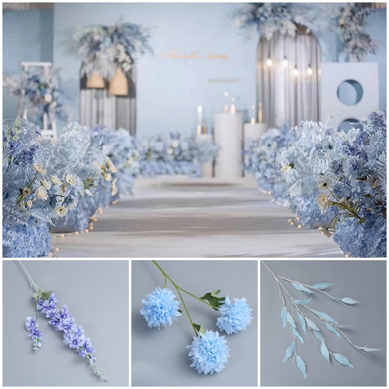 Wedding Celebration Blue Deep Blue Emulation Flower Rose Embroidered Ball and Fog Wedding Hall Overhanging Ceiling Floral Material Road Leading Flower Arrangement Art