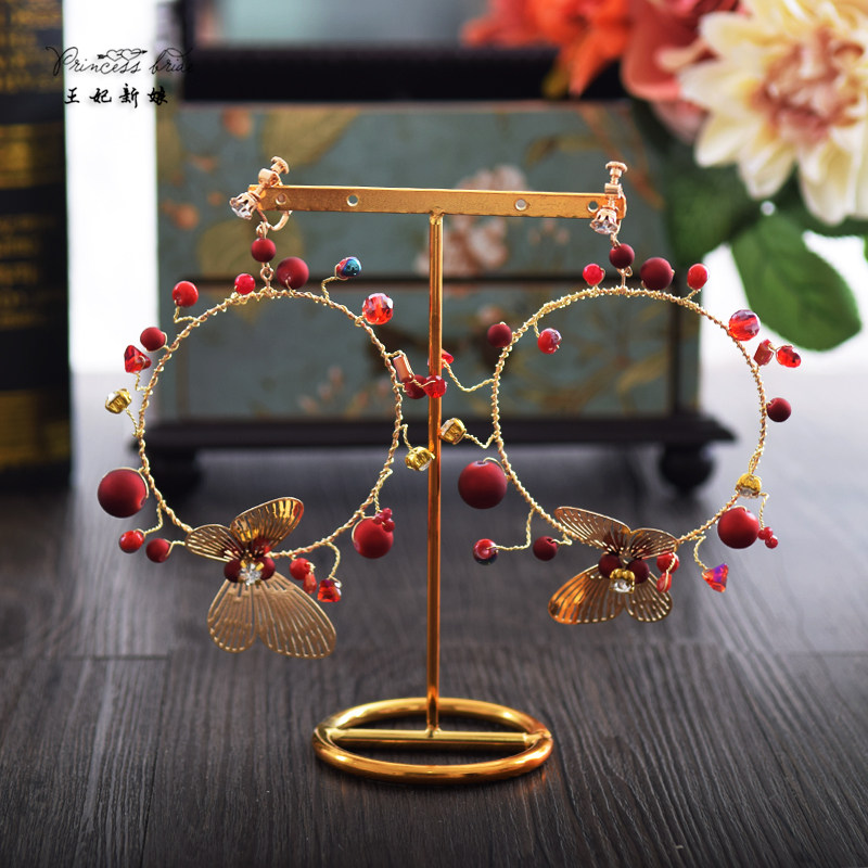 Retro Bride Gold Exaggerated Flower Earrings Big Circle Butterfly Earrings Party Photo Wedding Photography Jewelry