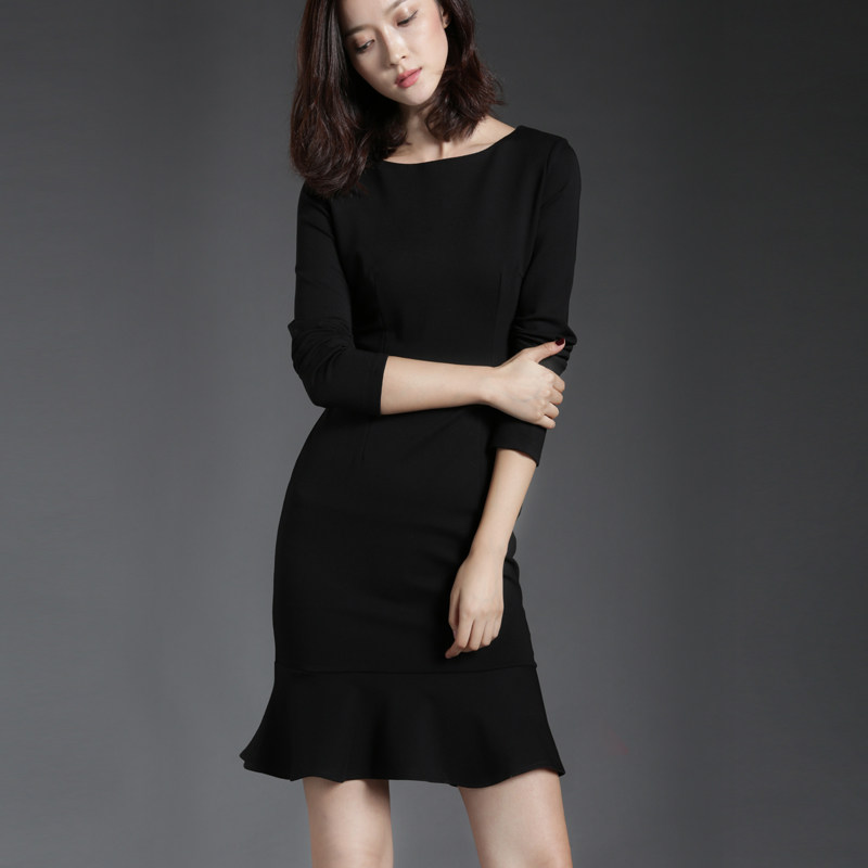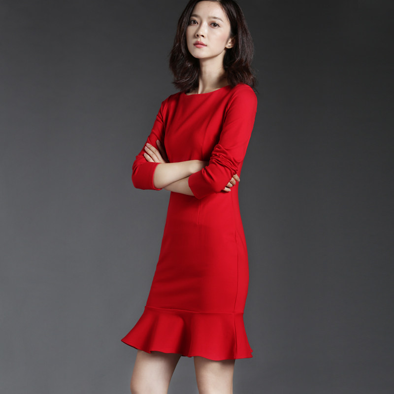 Long Sleeves Ocean Dress Women Winter Sexy Little Scents Style Retro Temperament Herben Red Autumn Winter Hit Bottom Fish Tail Skirt