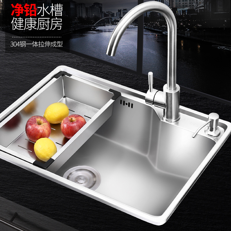 Zhengshan sink single sink washing basin kitchen 304 stainless steel sink thickening large single sink water basin household