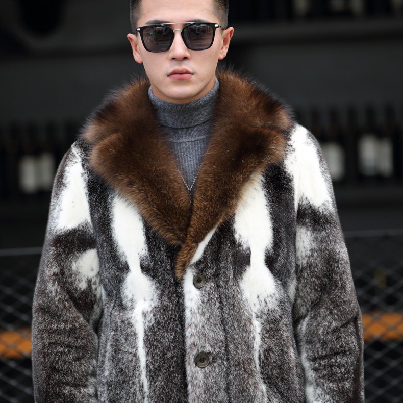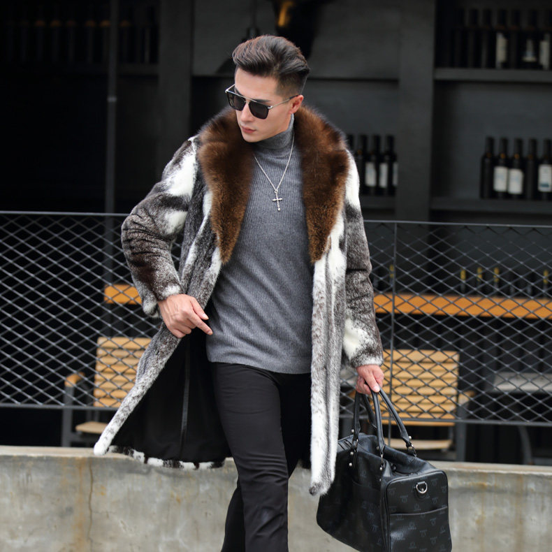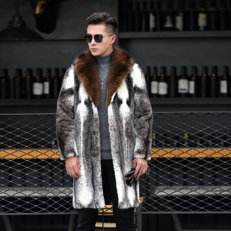 New mink leather Grand coat Male Mink Cross Mink Fur Fur Coat Big Coat Mano Ferret Ferret for male long version