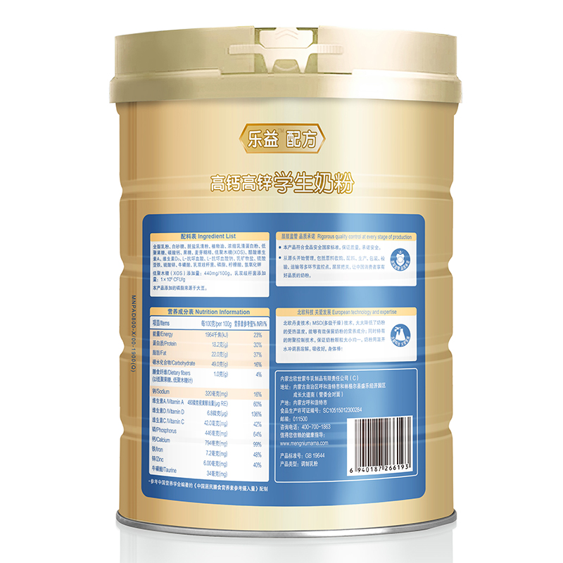 (2 cans) high calcium and zinc student milk powder 800g*2 cans