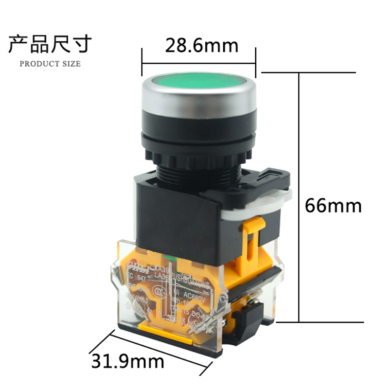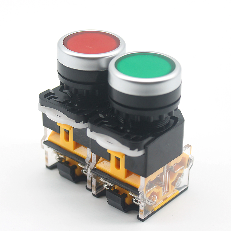 Power switch button switch self-lock LA38-11BNZS start flat button switch red green 220V boreholes 22m