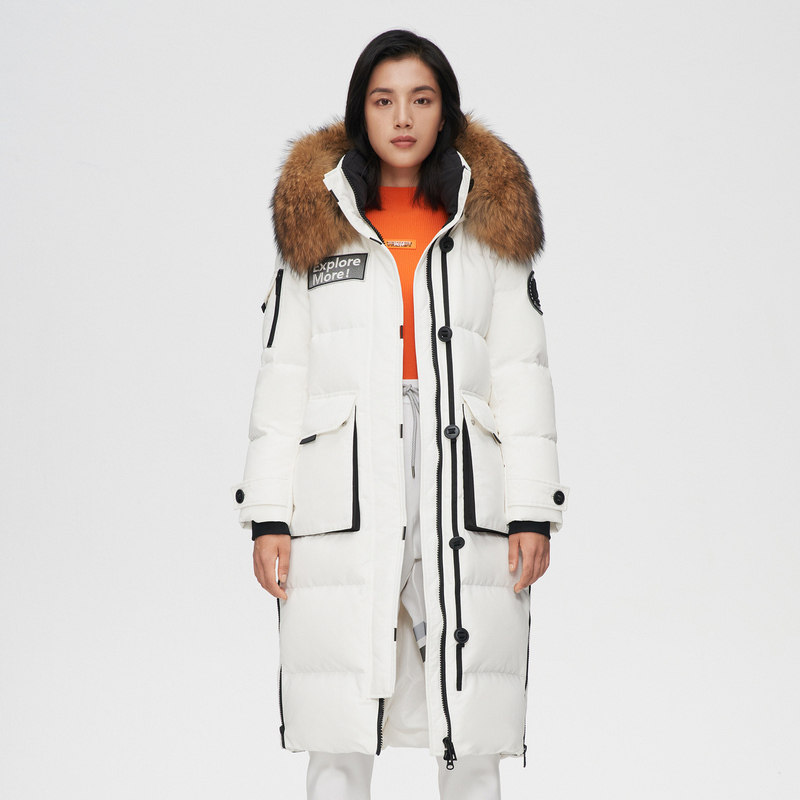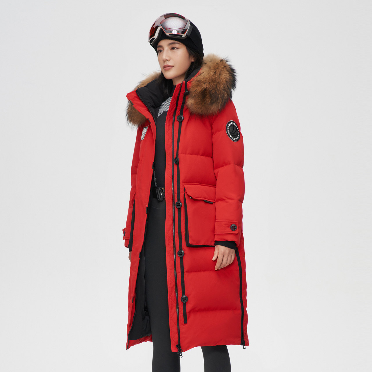 Special price clear cabin Podgson break code down jacket Super Long Thickened Goose velvet long version over knee extremely cold fashion big fur collar