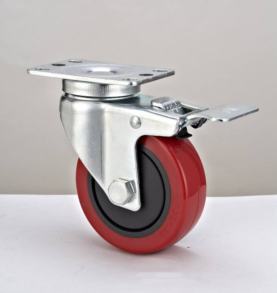 Lean tube flat caster polyurethane with brake universal wheel silent heavy-duty flatbed trolley cart wheel