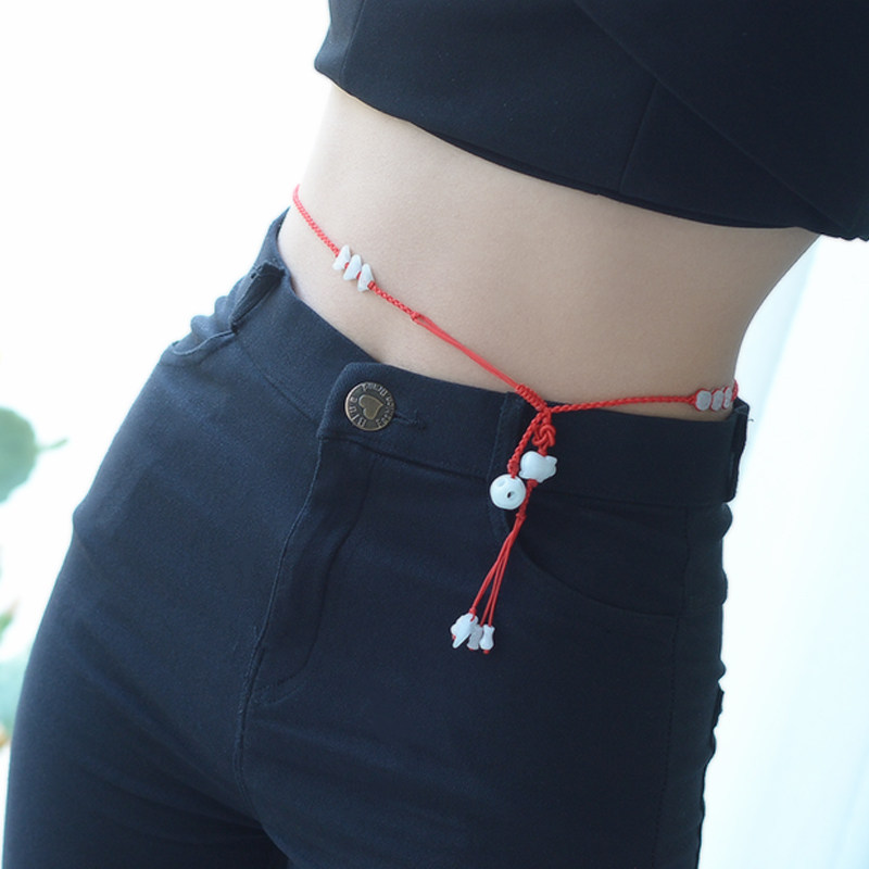2022 Year of the Tiger Five Elements Zodiac Emerald Red Rope Waist Chain Women's Honmei Year Gift Men Red Belt Waist Rope Sexy
