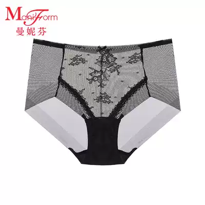 Manifen Four Corner Panties Women Lace Intractable Clear Thin Mid-waist Safety Pants Mesh Large Red 20610781