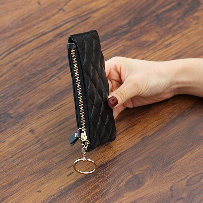 2022 new small fragrant wind rhombus Genuine Leather Laced Zero Wallet Soft Leather Mini Coin Bag Goat Leather Short Clip Woman