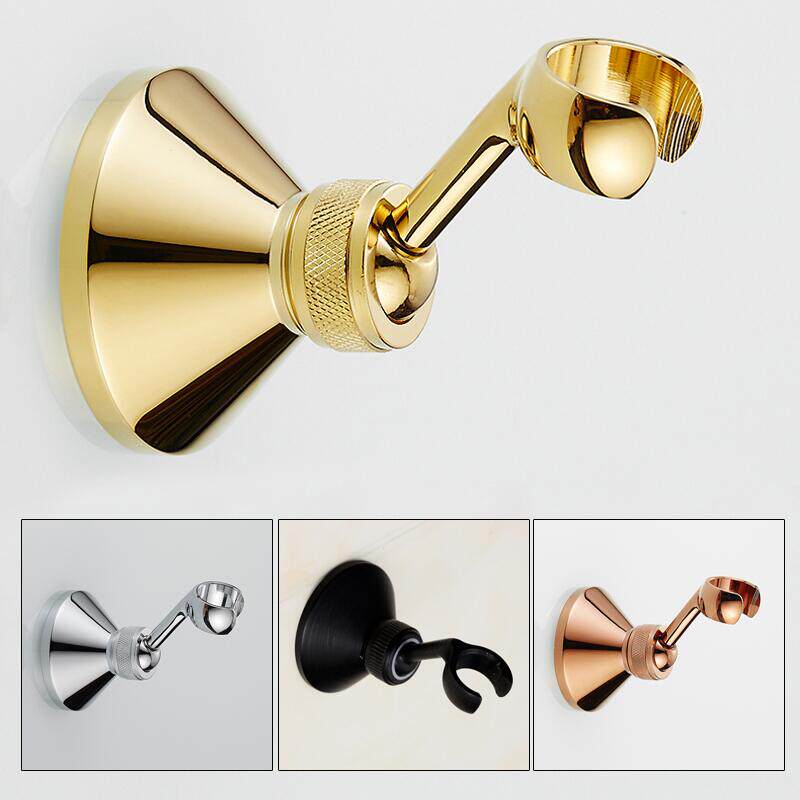 Punch-free antique copper shower bracket nozzle bracket wall mount adjustable hand-held shower bracket fixed seat gold