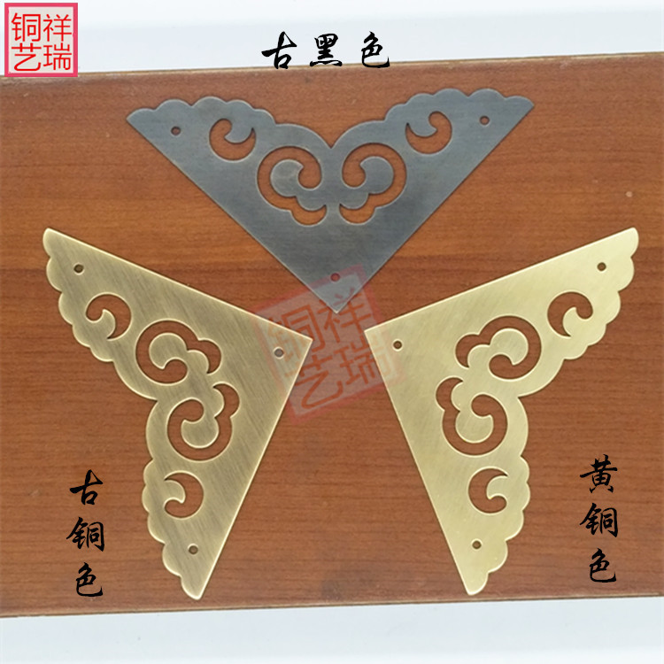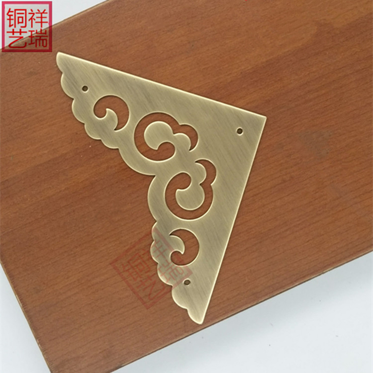 Chinese imitation antique cabinet door pure copper wrapping corner first decoration case Zhangmu box traditional Chinese medicine cabinet decorated with copper corner code guard angle flake corner flower