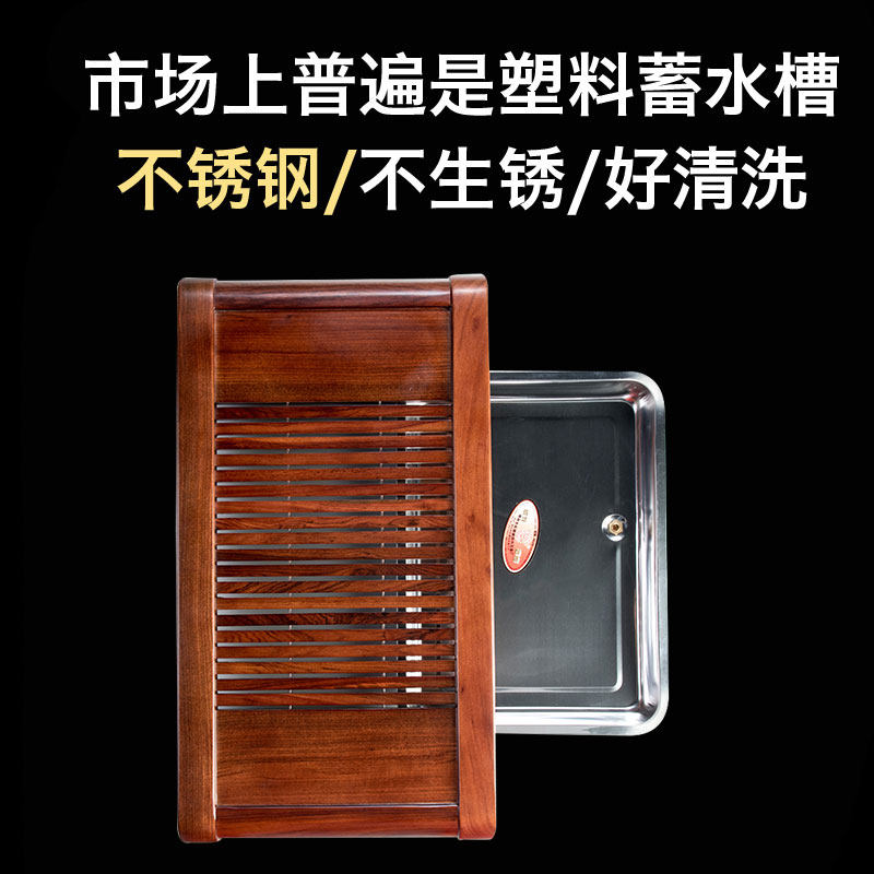 Solid Wood Tea Pan Black Sandalwood Flowers Pear Stainless Steel Water Storage Drawer Tea Set Tea Table Household Debriefing Kungfu