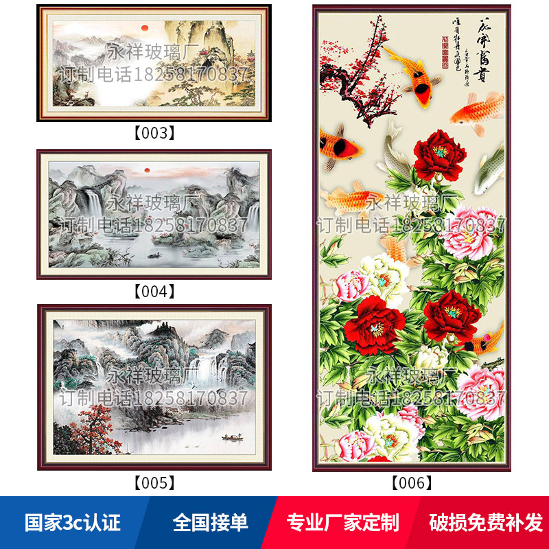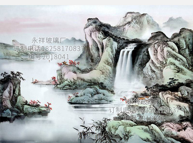 Manufacturers custom tempered ultra-white laminated glue clip silk clip silk landscape painting art partition screen background wall glazed glass