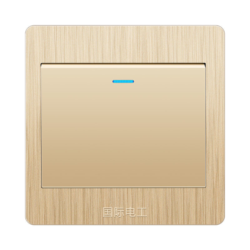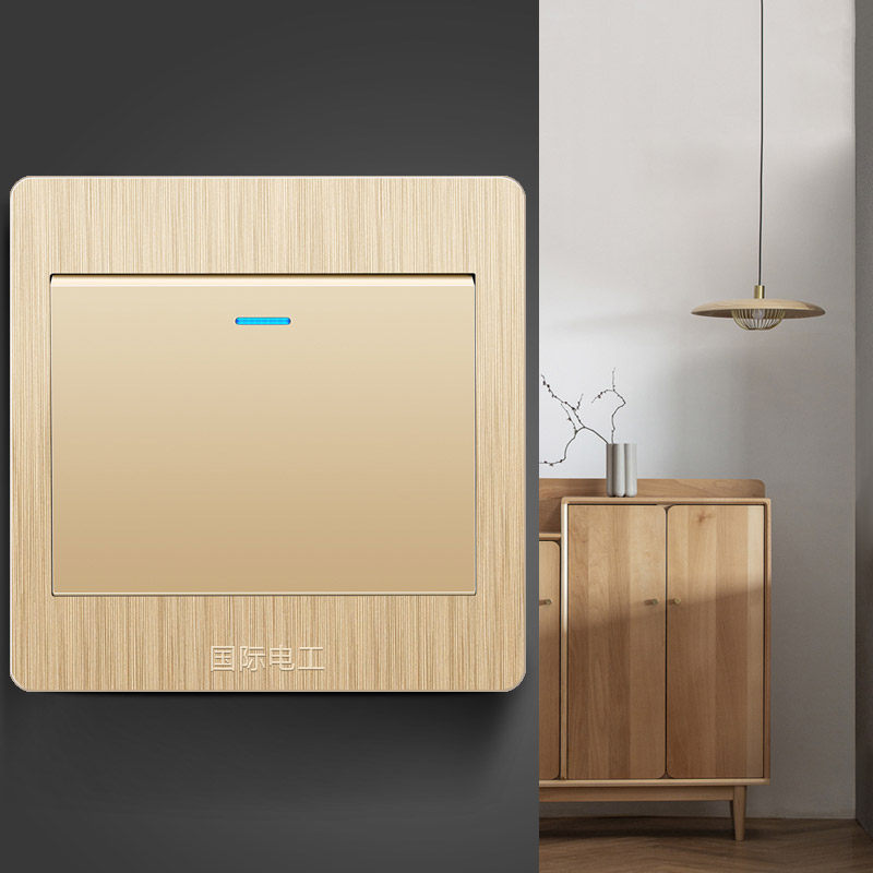 INTERNATIONAL ELECTRICS SWITCH SOCKET PANEL 86 WALL CONCEALED WIRE DRAWING CHAMPAGNE GOLD SINGLE OPEN ELECTRIC LIGHT POWER OPEN DOUBLE CUT