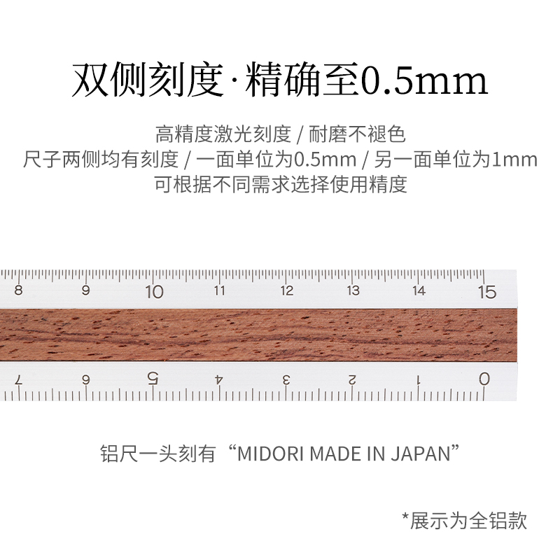 Japanese midori aluminum ruler laser graduated sub without fade aluminum insert wood splicing drawing metal ruler student with manual measuring tool 15cm