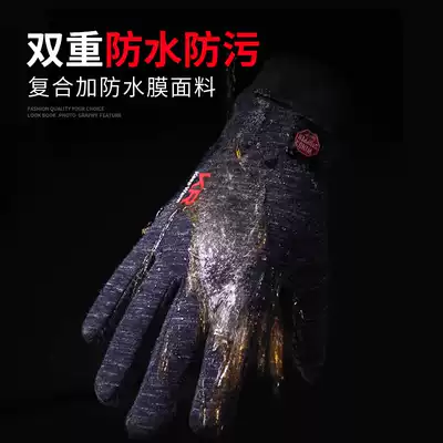 Winter plus velvet warm windproof gloves men's non-slip wear-resistant touch screen outdoor mountaineering cycling locomotive riding gloves