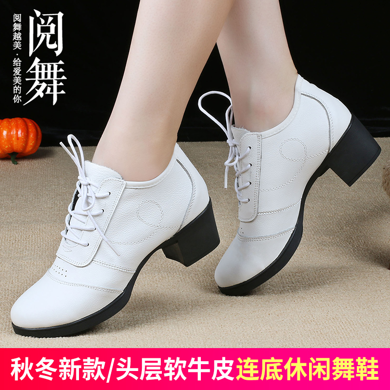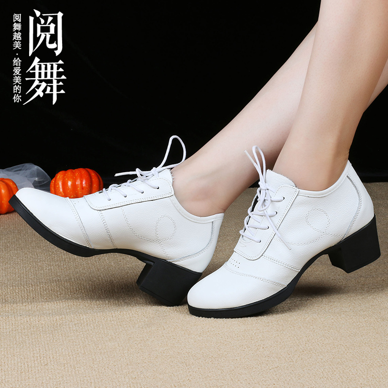 Genuine Leather Dance Shoes Woman 2022 New square dance shoes High heel Soft bottom Four Seasons Sailors Dance Dancing Shoes Adults