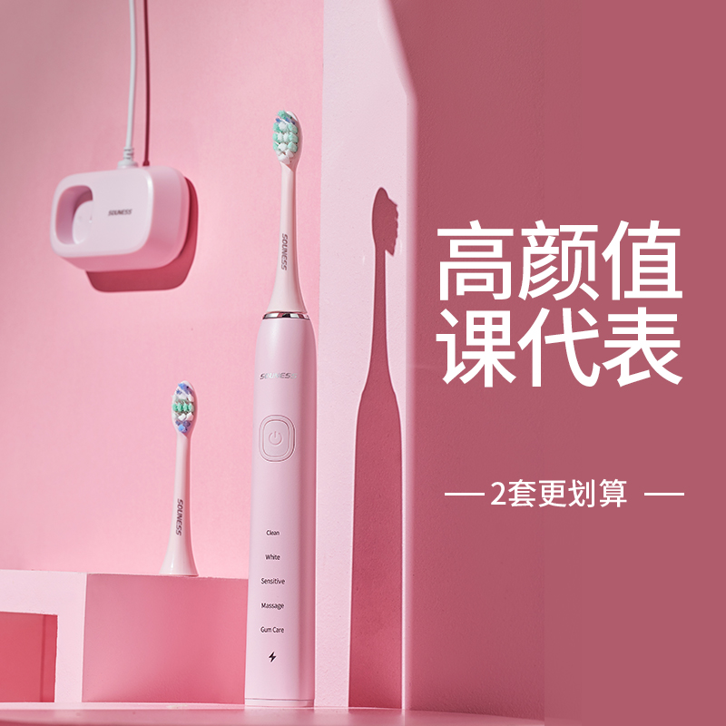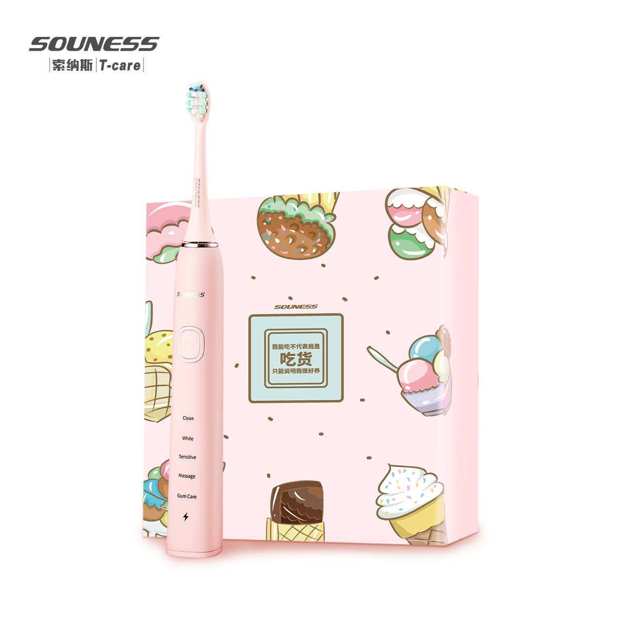 Sonas Sonic electric toothbrush Adult rechargeable whitening soft hair brush head Pink men and women birthday gift gift box