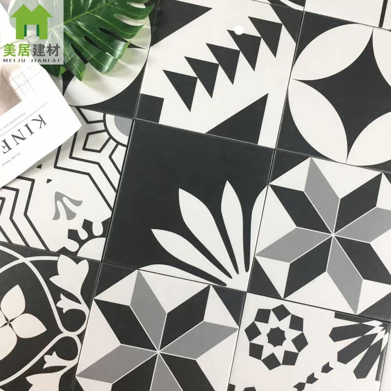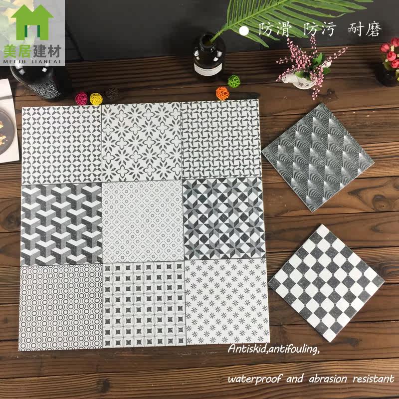 Geometric stereo tiles 200 makeup room tiles modern black and white ash bathroom nonsslip floor tile kitchen wall tile flakes