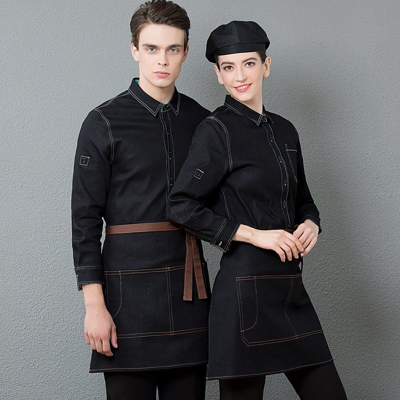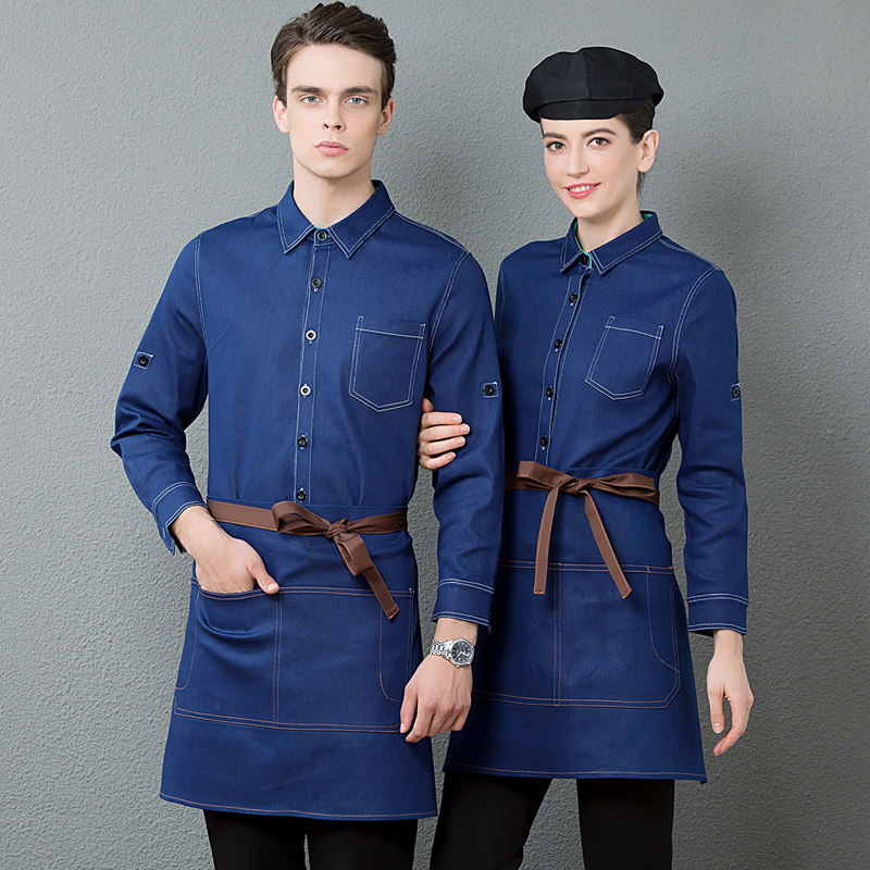 Waiter long-sleeved men's and women's work clothes Western restaurant catering uniform Fast food restaurant hotel staff clothing Denim autumn and winter clothing