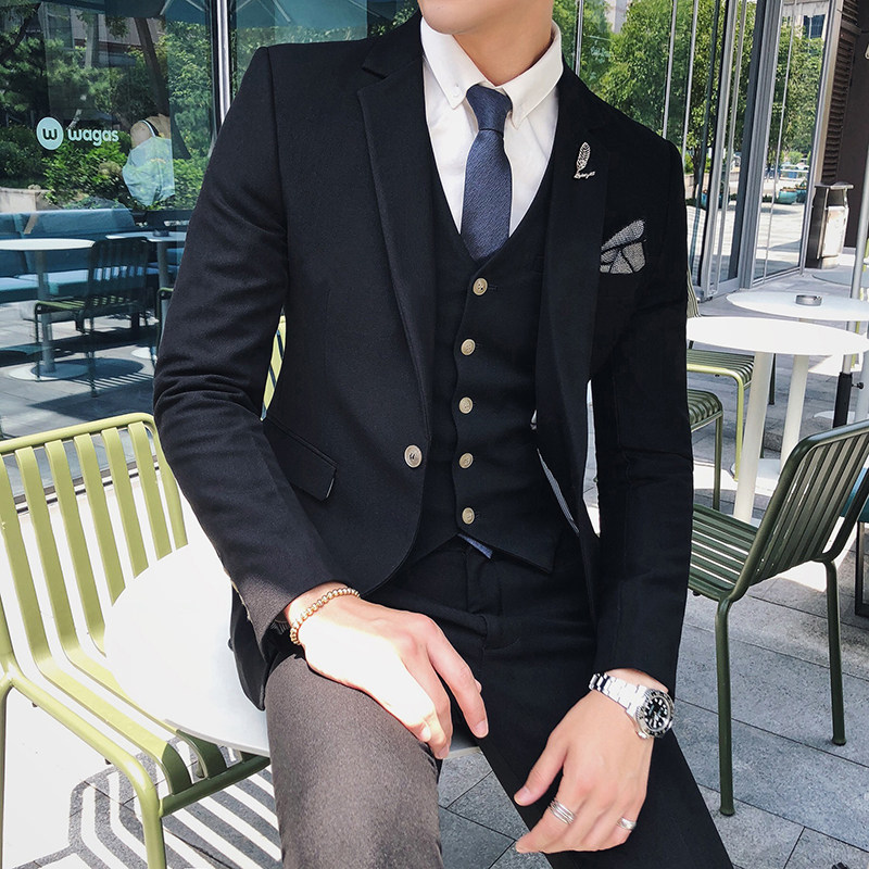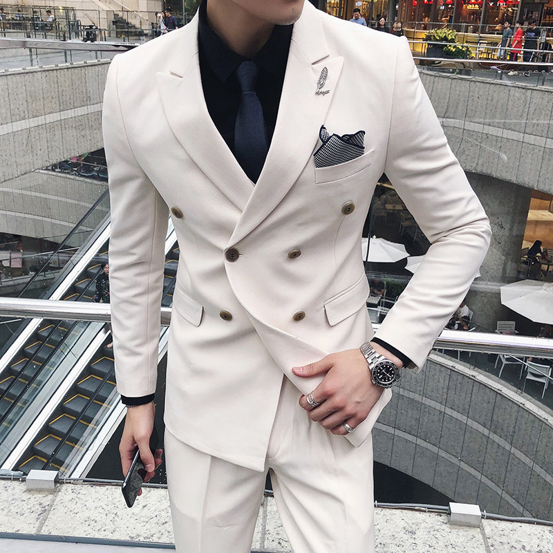 Autumn Winter West Suit Suit Men's Suit Three Sets Business Casual Han Prints Body White Groom Wedding Gown Wave