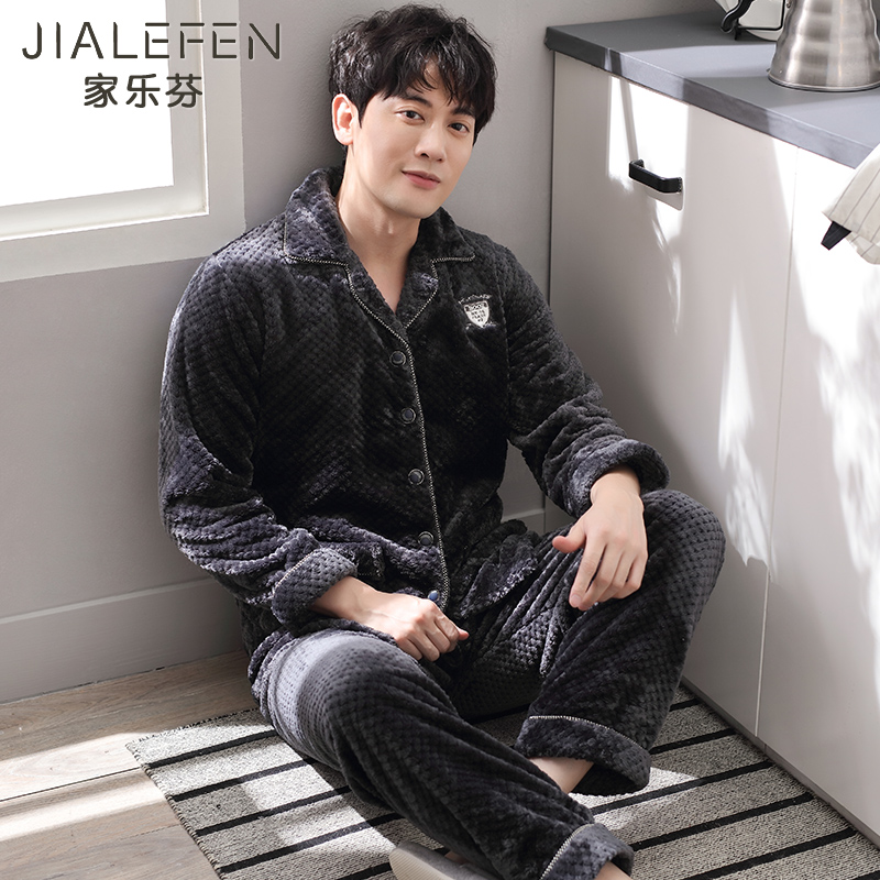 Pyjamas Men's autumn Winter flannel Flannel Thicken gushed Warm Coral Suede Winter WINTER DAY Increased Code Suit