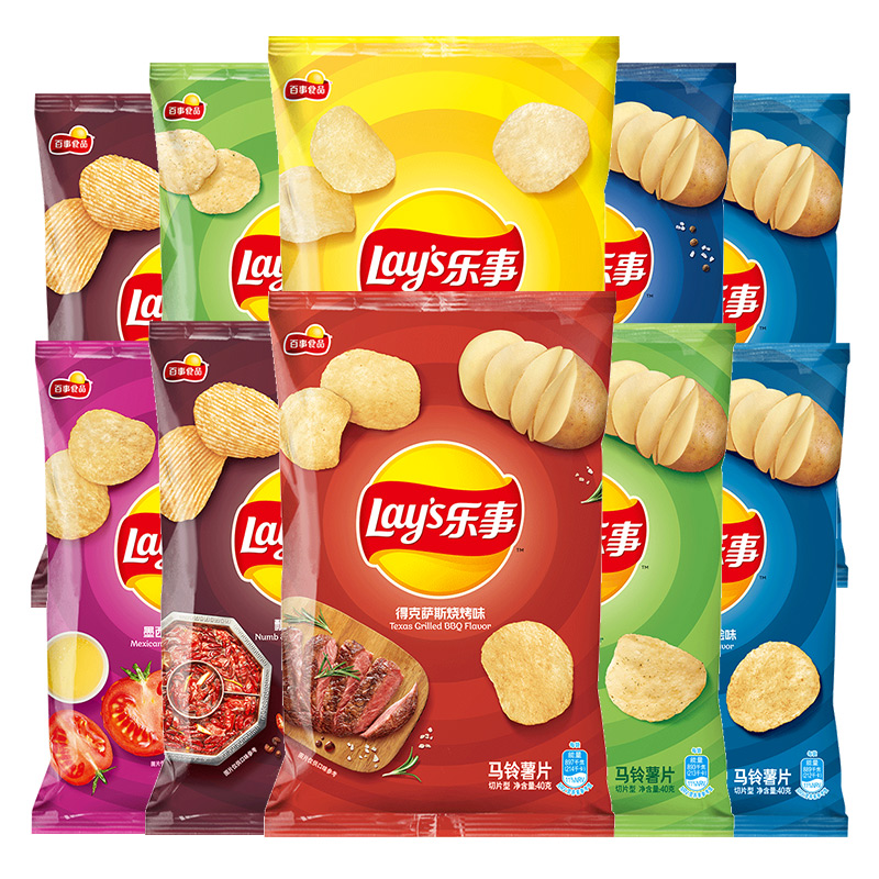 Fun Potato Chips 40g * 10 Packs Casual Snacks Big Gift Bags Mustard Taste Fries Puffed Food Whole Boxes Wholesale Snacks