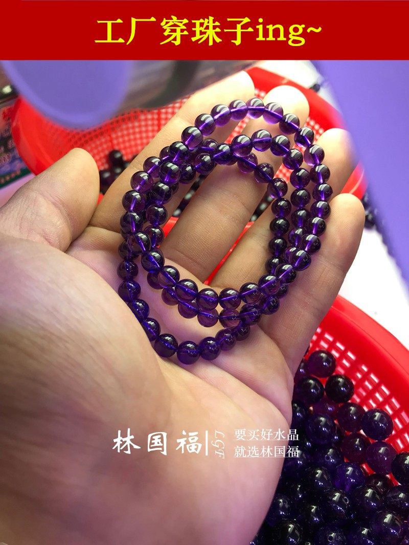 Lin Guofu Collection Class 7A Amethyst Handmade Uruguayan Purple Crystal Handstring Natural Crystal Male and Men's Department Gift