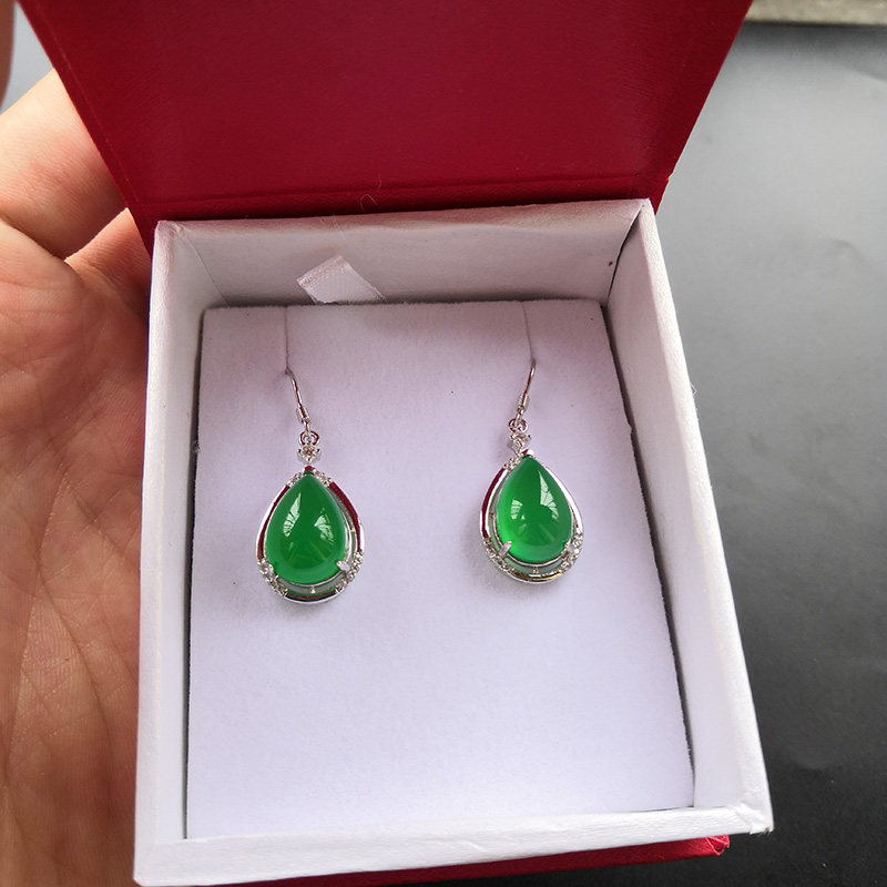 Natural Ice Seed Drop Jade Medullary Pendant Jewel Green Emerald Color Agate Women's Jade Earrings Send Girlfriend