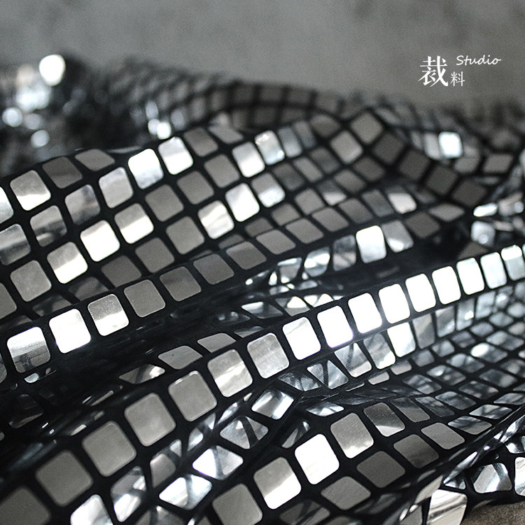 Mirror original plaid sequin stretch designer fabric Imported fashion dress high-grade diy fabric