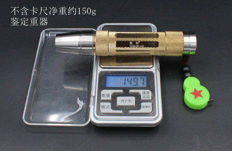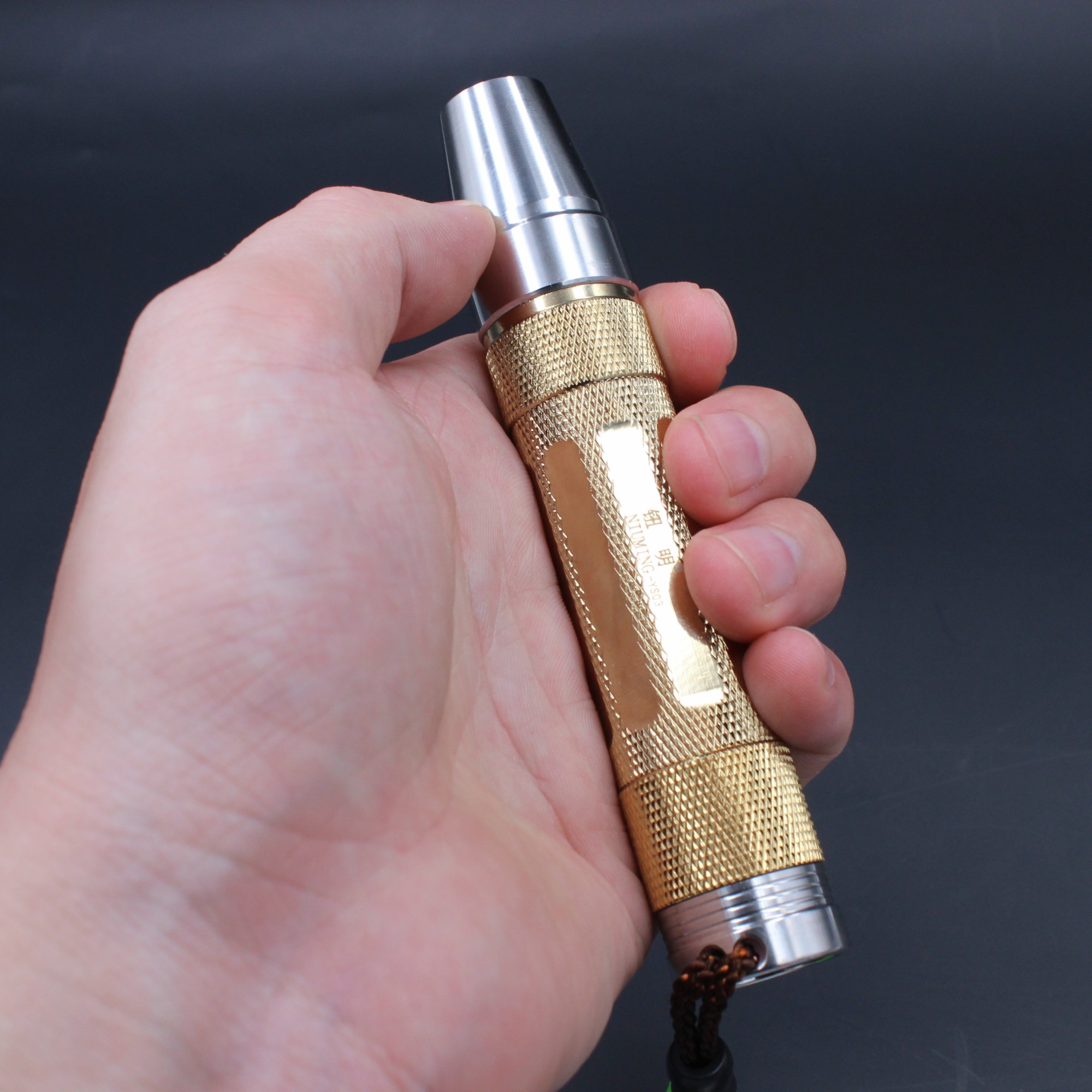 Button Ming CREE R5 bright light jade flashlight white light yellow light cylinder body pure copper identification jade emerald
