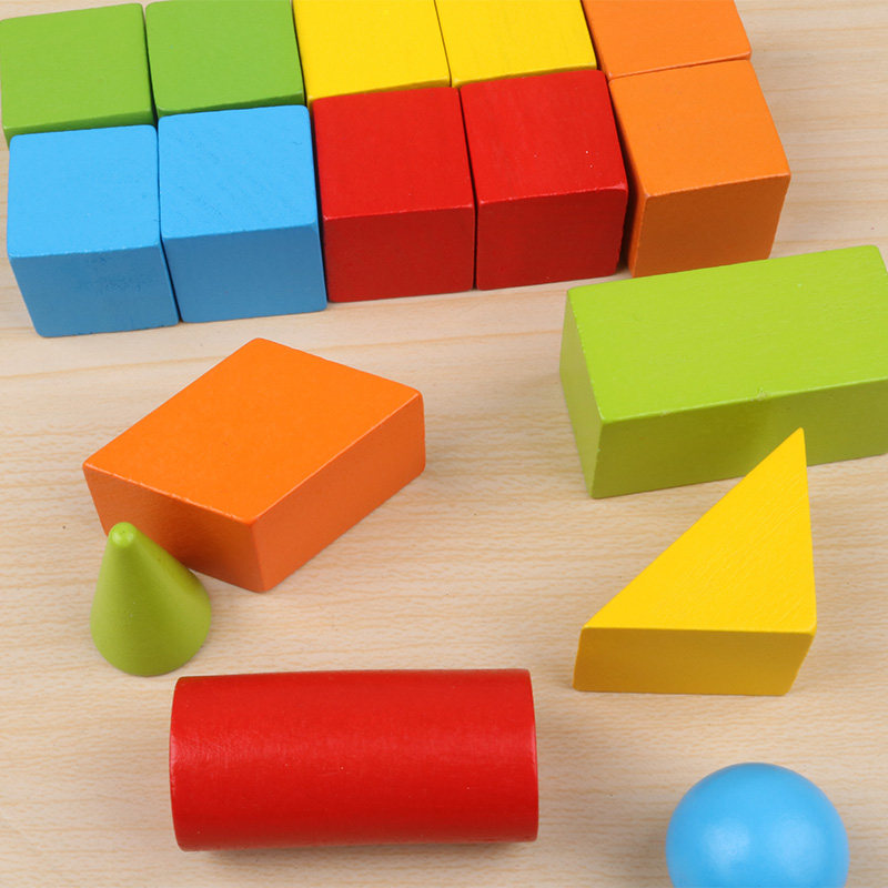 Solid wood three-dimensional geometry First grade mathematics recognition graphics Second grade observation objects Wooden teaching aids Counting set