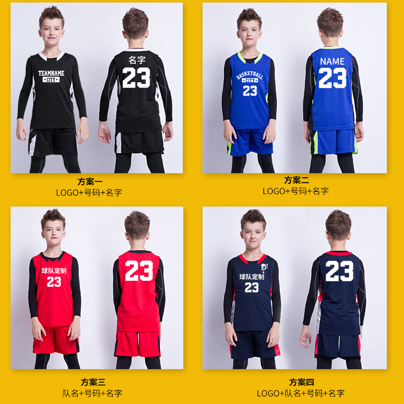 Children's basketball uniform suit men's custom primary school sports competition team uniform autumn and winter tight four-piece printed jersey