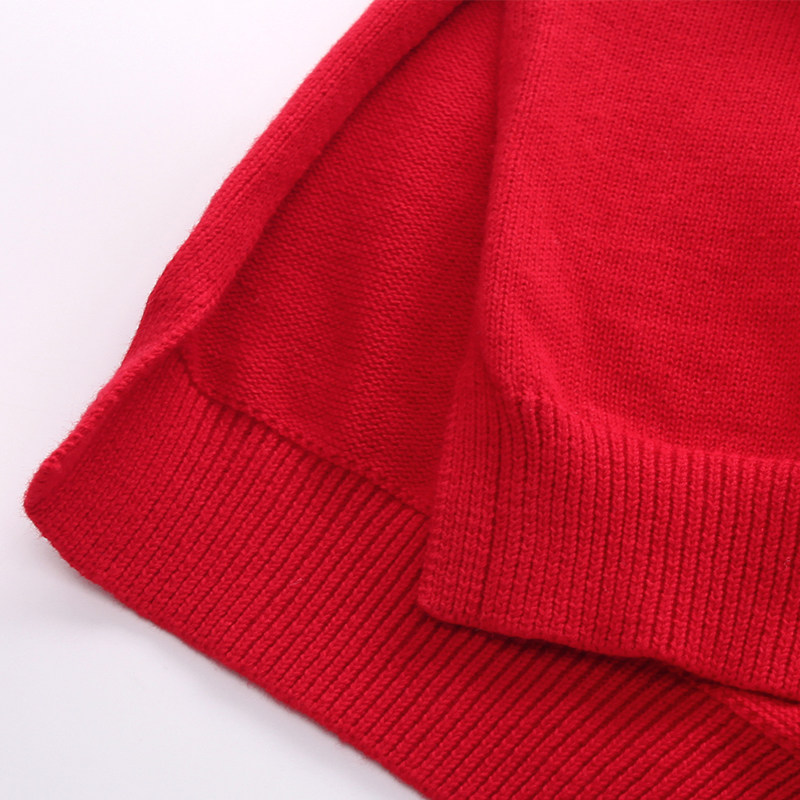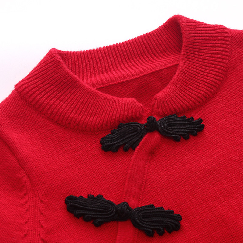 China Wind Round Collar Needlewear long sleeve sweater in the middle of a long version of a long version of the red qipao for the Year of the year pro-subdress.
