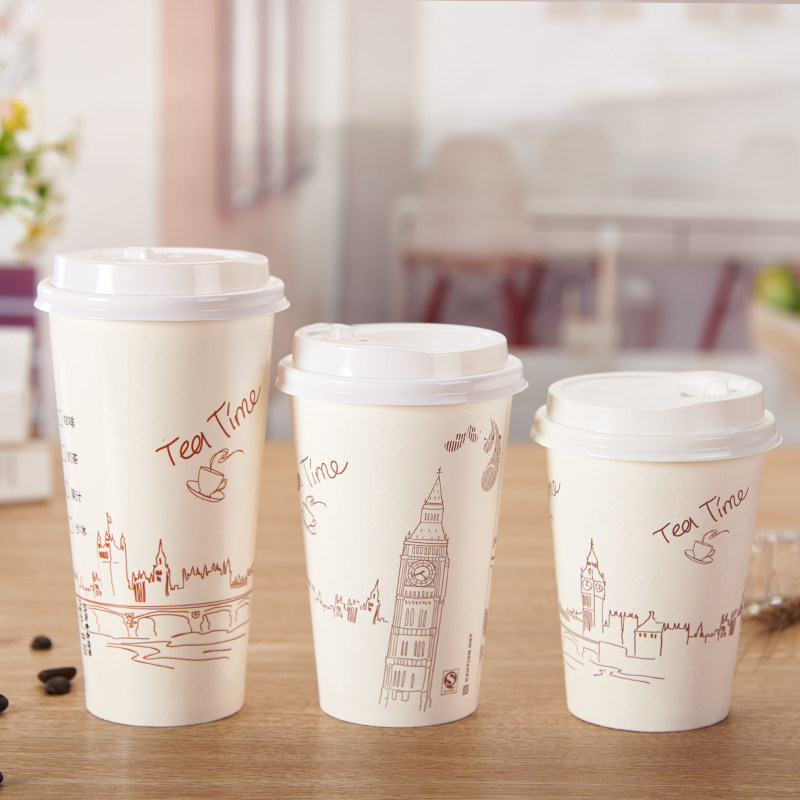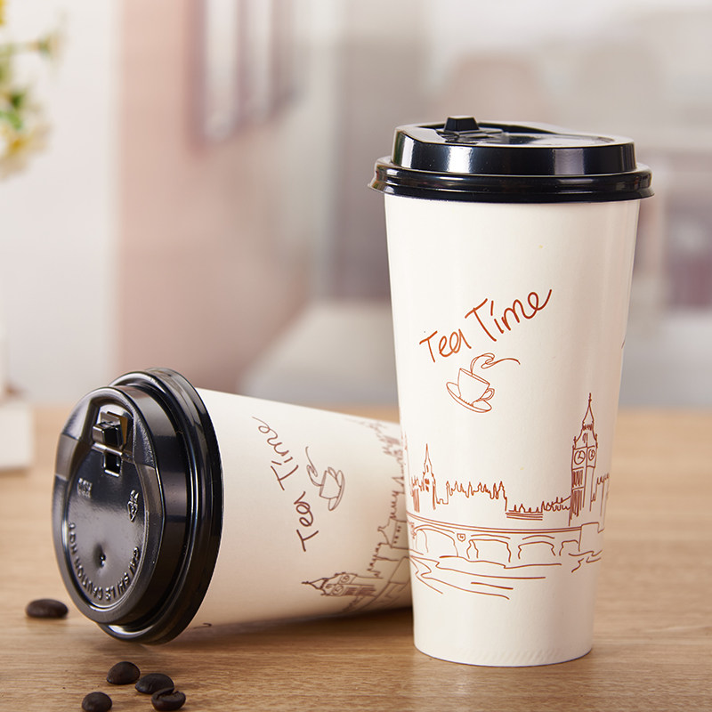 Disposable coffee cup with lid thickened milk tea cup soy milk cup commercial packed hot drinks cup 500ml 700ml