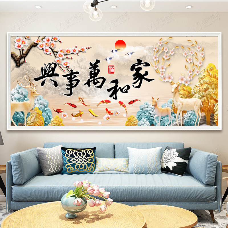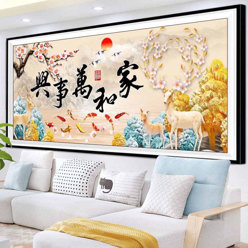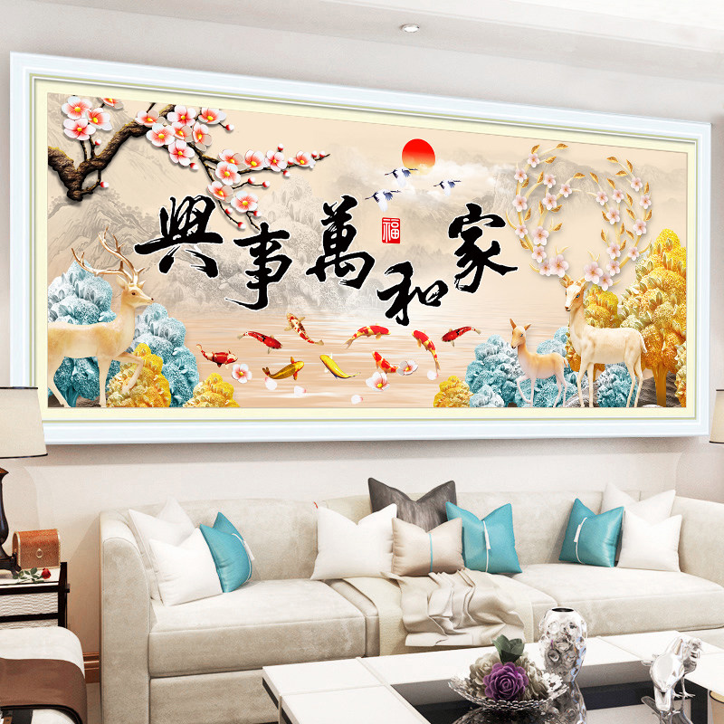 Cross embroidered 2021 new line embroidered home and Masterpiece Living room Dramatic Fortune Elk Brief Modern Embroidery Full Embroidered