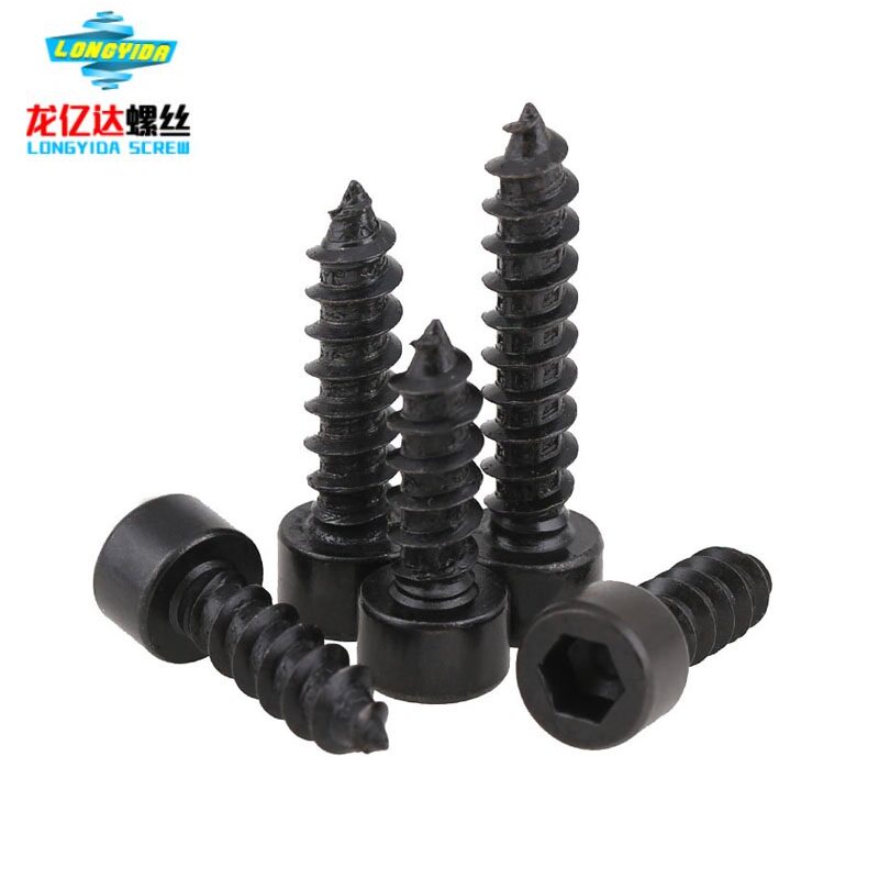 M3M4 304 stainless steel black cylindrical head hexagon self-tapping screw Black plated zinc cup head pointed tail wood screw