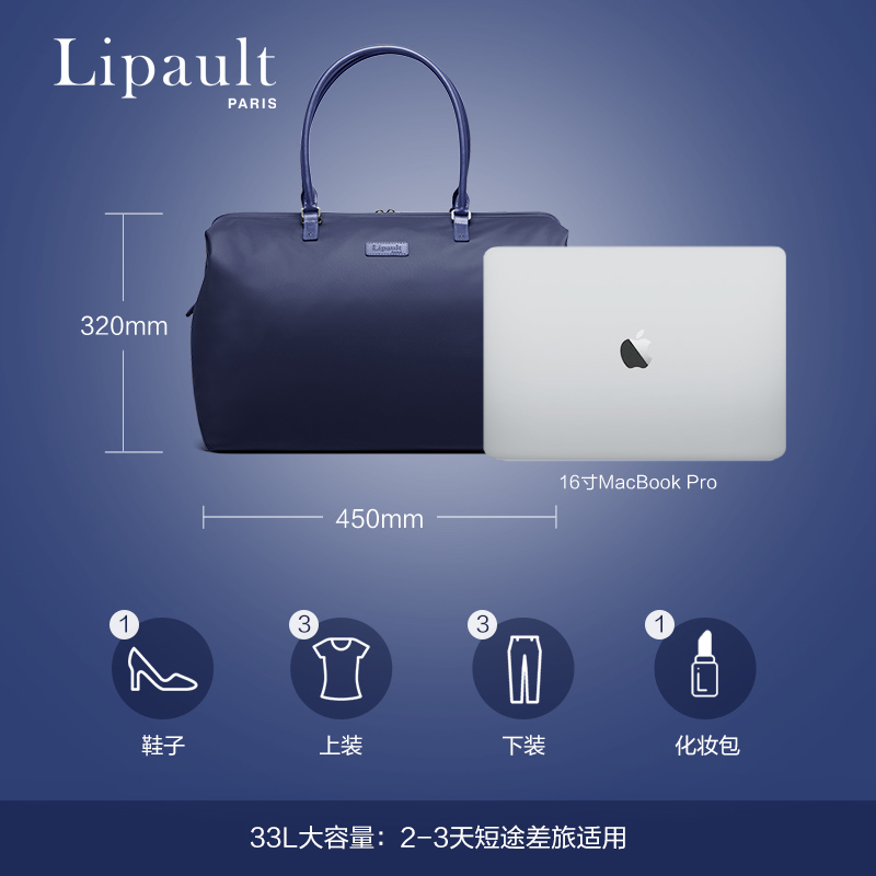 Lipault travel bag women's large capacity short-distance luggage bag lightweight portable fitness bag women's bag large capacity P51