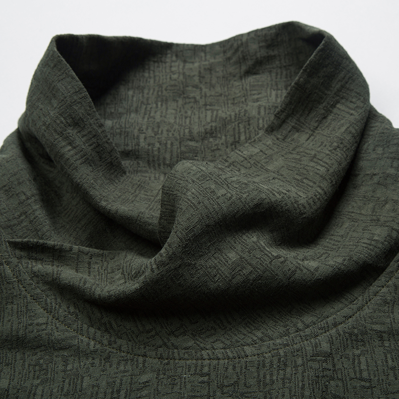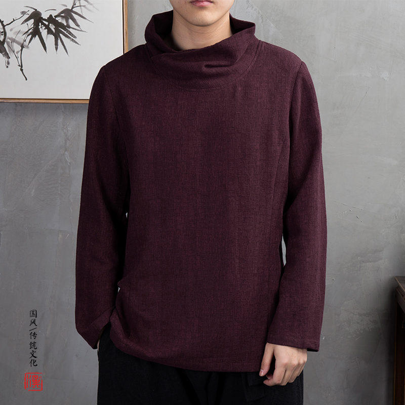 Chinese style Buddha large size Linen men's high neck T-shirt Cotton and Hemp youth Tang dress National style long sleeve top base shirt