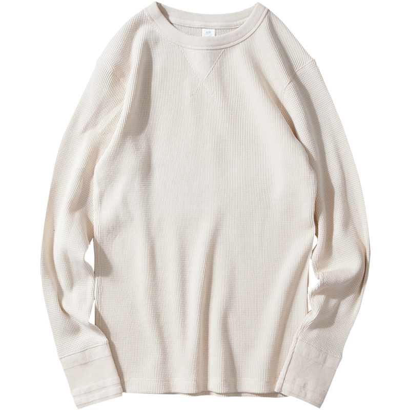 Click on the retro-pound thick solid pure cotton Huffg inverted triangular round neckline Long sleeves T-shirt male spring autumn swarm up to the bottom-Taobao