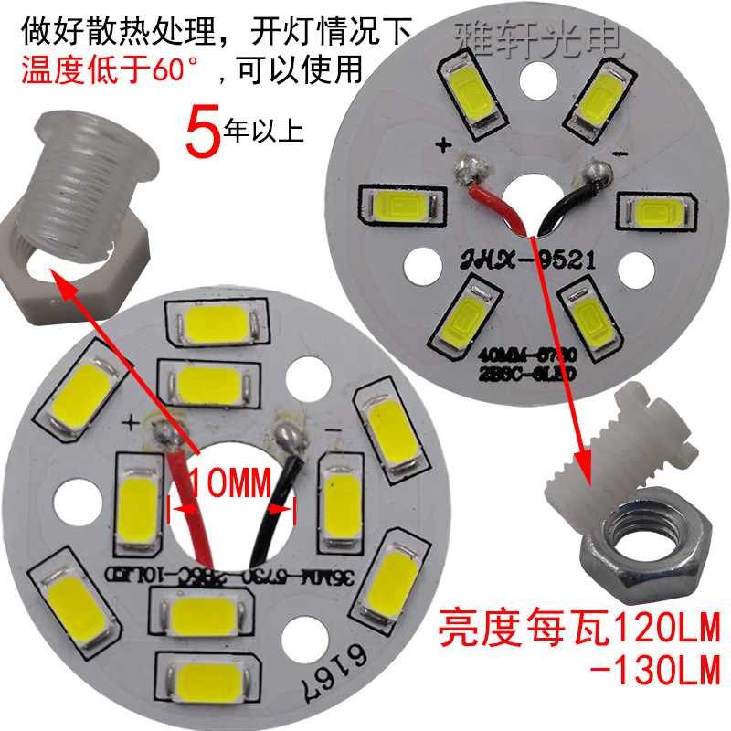 LED light board replacement light source round replacement highlight wick modified chandelier crystal lamp downlight 5730W light sheet 5w