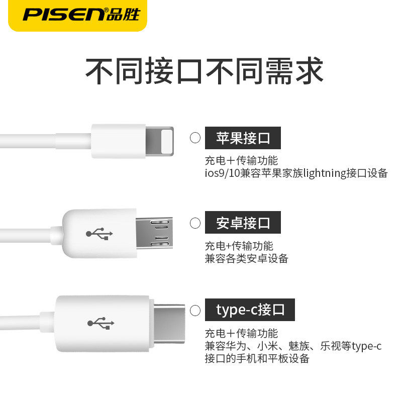 6A Super Fast Charge★ Apple White 1 2m★ Apple Android Type-C (White) One Drag Three 1m Data Cable 1A Charger Set Combination (White) One Drag Three 0