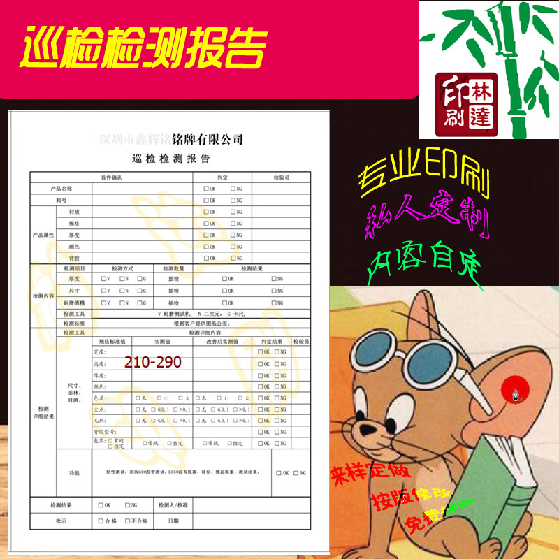 Quality check list Re-check sample list Custom printed sample label A4 two-union three-union four-union carbon-free paper