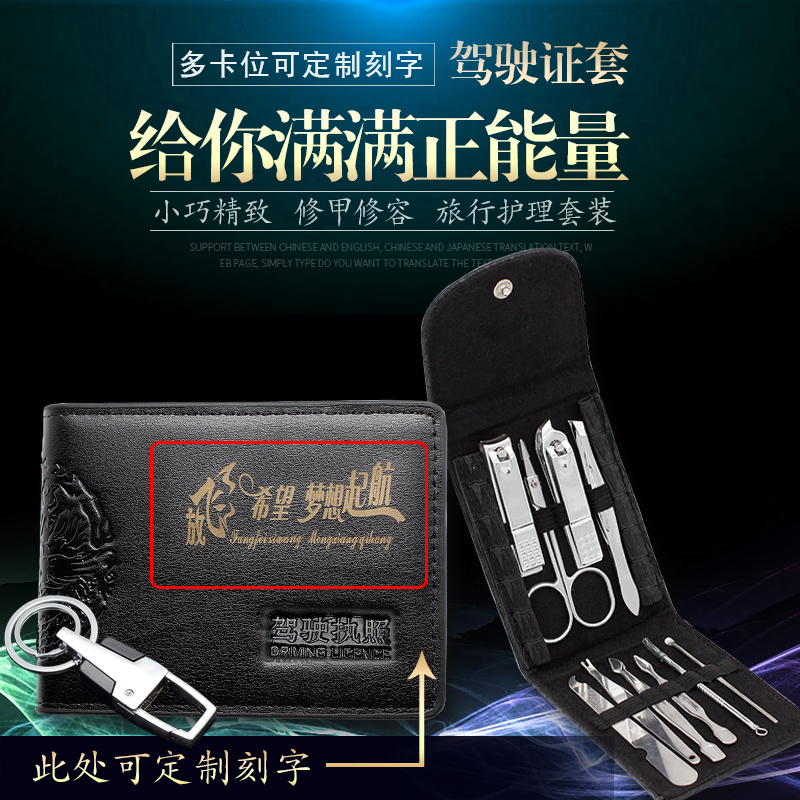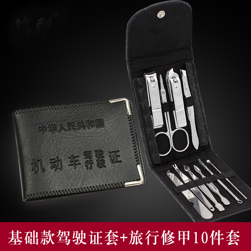 Quality driving license set Manicure 10-piece set keychain Quality custom driving license set Manicure 10-piece set keychain Quality driving license Z-word belt manicure 10-piece set black