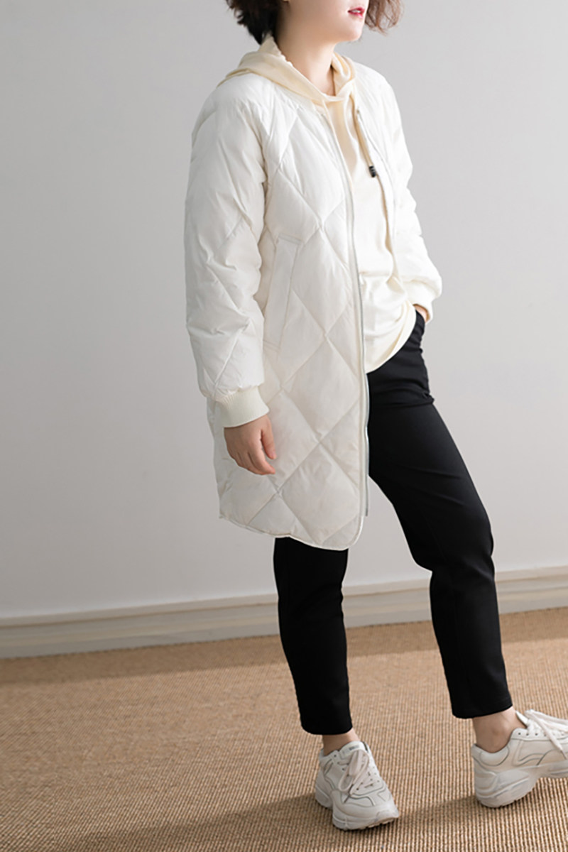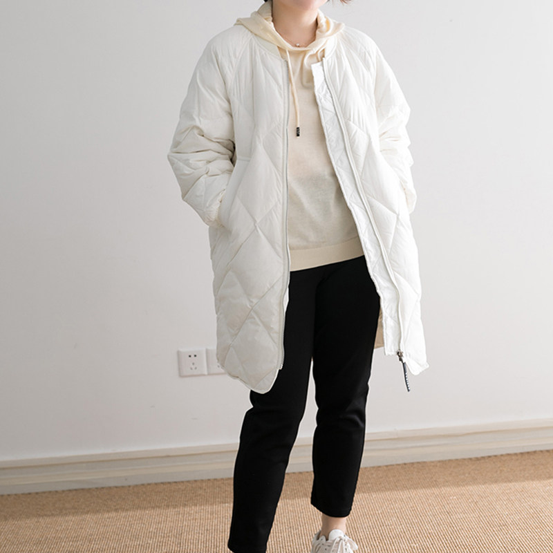 Feather 95 white duck down~medium and long version of diamond grid baseball collar down jacket jacket female